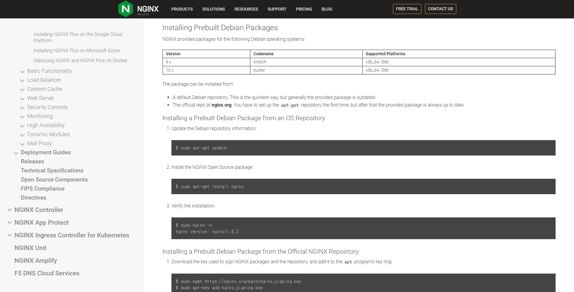 다행히도 nginx 공식 문서에 가니 debian 기반의 운영체제에 nginx를 설치하는 방법을 찾을 수 있었습니다.