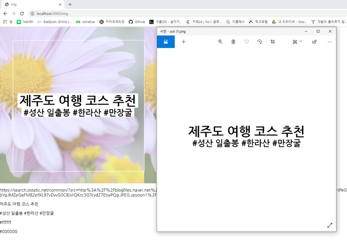 입력받은 데이터를 토대로 화면을 구성하는것은 별다른 라이브러리가 필요하지 않으니 모두 css로 처리해주겠습니다. 다만 화면에 띄운 요소들을 이미지로 변환해서 사용자에게 반환해주는건 라이브러리를 사용해야겠습니다. 이러한 기능을 가진 라이브러리로는 html2canvas가 있으니 이걸 이용해보겠습니다.