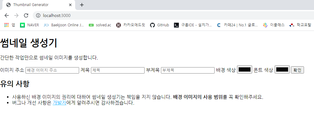 오랜만의 토이 프로젝트입니다. 그동안 블로그 포스트를 작성하며 매번 썸네일을 직접 만들었는데, 대단한 퀄리티는 아니었지만 매번 이미지 편집 프로그램을 이용하는 과정이 조금 번거로웠습니다. 이 정도의 간단한 이미지 정도라면 프로그램으로 만들어 사용하는게 낫지 않을까? 라는 생각이 들어 썸네일을 생성해주는 프로젝트를 진행해보기로 하였습니다.