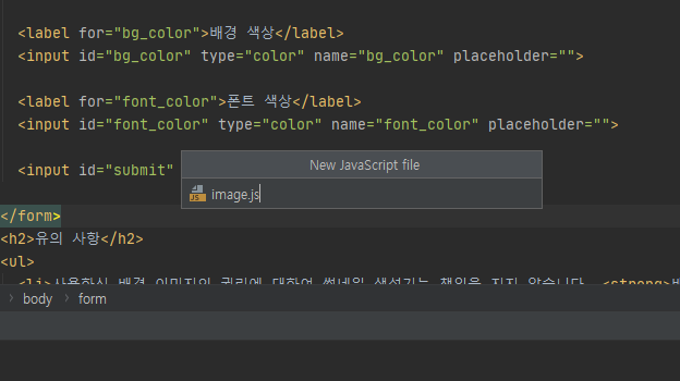 이제 폼에 데이터를 넣어서 확인 버튼을 누르면, /img 경로에 Post 방식으로 요청을 보낼 수 있게 되었습니다.
