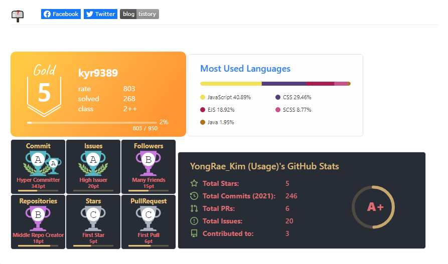 깃허브 프로필에도 골드 명함이 띄워지니까 기분이 좋네요 😊