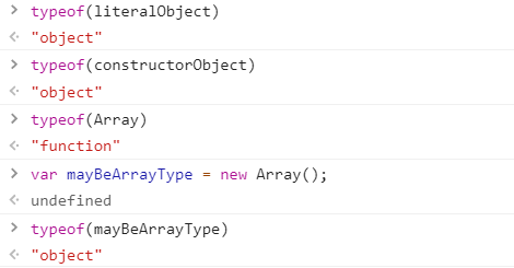 위의 방법들로 생성한 객체들은 모두 object 라는 타입을 가집니다.