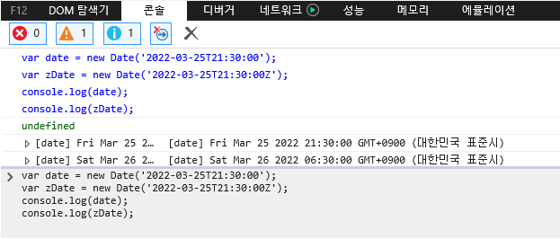 놀랍게도 Date() 객체가 자동으로 한국 표준시를 적용하여 자동으로 9시간을 더한 채 저장해 준 모습입니다. 별다른 작업 없이도 한국 기준의 시간이 정확히 출력되네요.