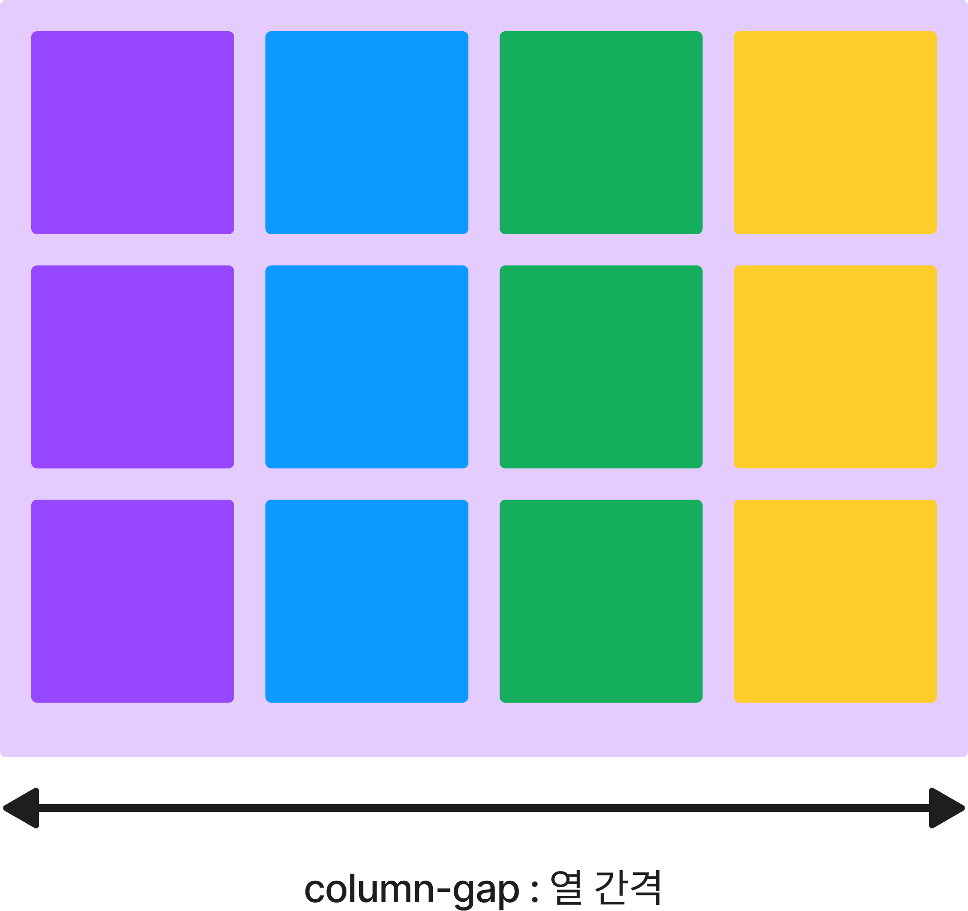 column-gap: 1rem; // 세로 행 간 거리를 2rem으로 설정.