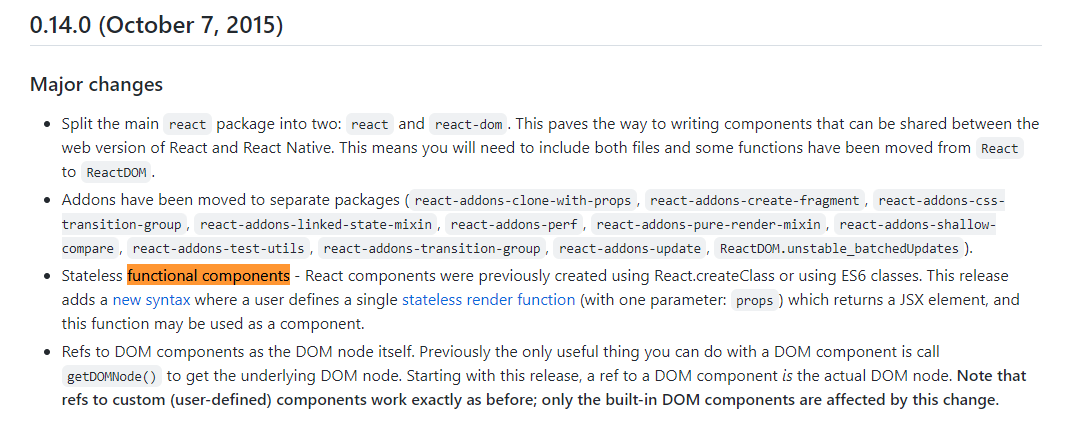 사실 함수 컴포넌트는 처음 리액트가 나올때는 존재하지 않았던 기술입니다. 이전까지의 리액트 컴포넌트들은 클래스 컴포넌트로만 구성할 수 있었고, 함수형으로 작성하는 컴포넌트는 몇 번의 업데이트 이후에야 등장하였으며 안정적으로 사용되기까지 약간의 시간이 더 필요했습니다.