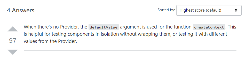 만약 Provider가 없는 경우, 처음 Context를 만들때 적용한 기본값이 사용된다고 하는데... 같은 타입의 상태인데 적용 범위에 따라 다른 양상을 보여야 하는 경우라면 사용 될 것도 같습니다. 하지만 흔한 경우는 아닌 것 같다는 생각이 드네요.