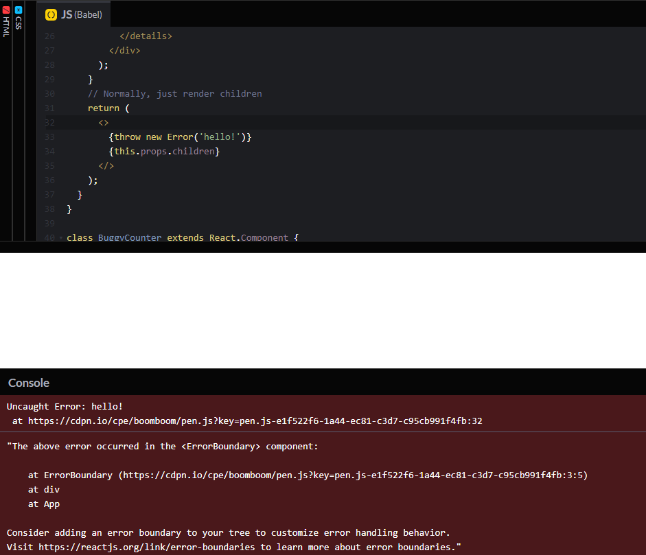 Error Boundary Live Demo - React docs