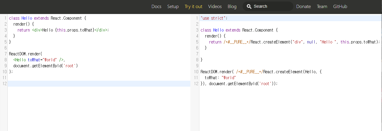 어떤가요? 바벨 덕분에 우리는 편리한 JSX를 사용할 수 있었던 것입니다.