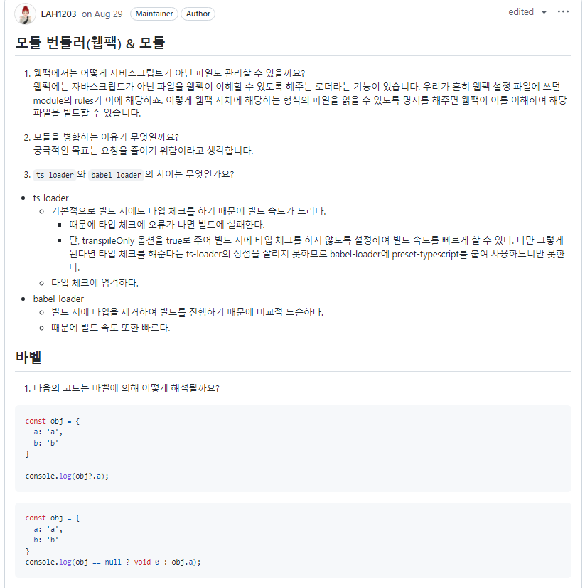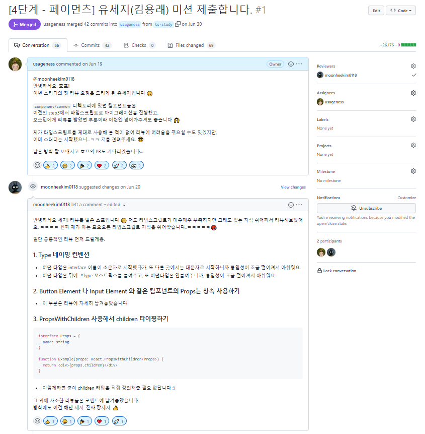 공부하려는 내용에 맞게 각자가 다 다른 다양한 방식으로 스터디를 진행해서 끝까지 지루할 틈이 없었습니다. 특히 서로 코드 리뷰를 해주던 타입스크립트 스터디는... 얼핏 봐서는 놓치고 넘어갈만큼 굉장히 세세한 부분까지 꼼꼼히 체크하고 리뷰를 해주셔서 특히나 감사하다는 말씀을 드리고 싶었습니다. 고마워요 😊😊