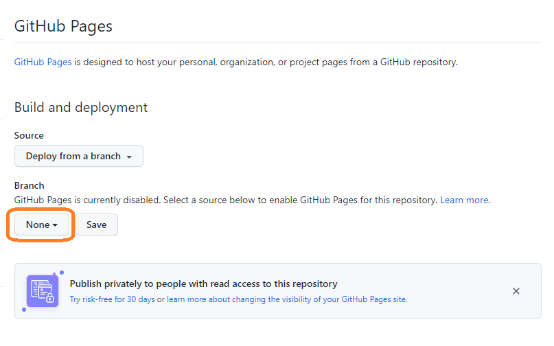 3. Branch에서 정적 페이지가 준비된 브랜치로 변경합니다.