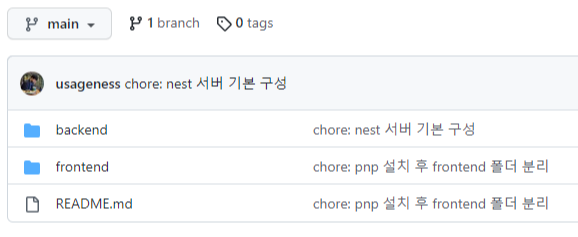 실제 깃허브를 기준으로 한 레포지토리에 하나의 서비스만 넣어둔다면 git init을 해야하는 번거로운 과정을 생략해서 좋겠지만, 제 경우에는 하나의 레포지토리에 frontend와 backend를 모두 넣어두는 식으로 구성을 하려 했기에 이러한 자동 생성이 문제가 되었습니다.