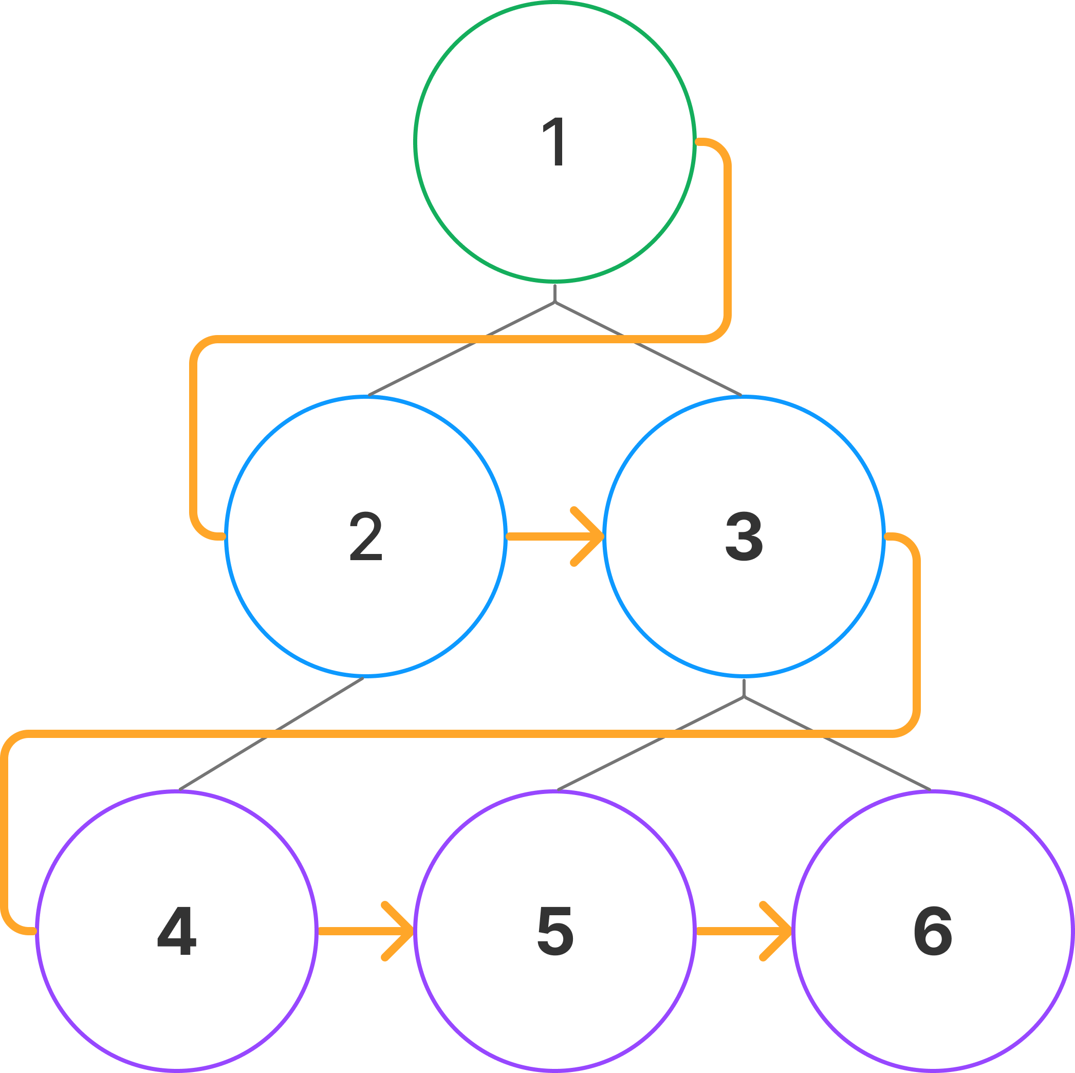 트리를 순회하는 모양이 너비(breadth) 방향으로 퍼지는 것과 같다고 하여 너비 우선 탐색이라는 이름이 붙었는데, 이후에 나올 DFS의 모양과 비교하면 적절한 이름이라고 느껴집니다.