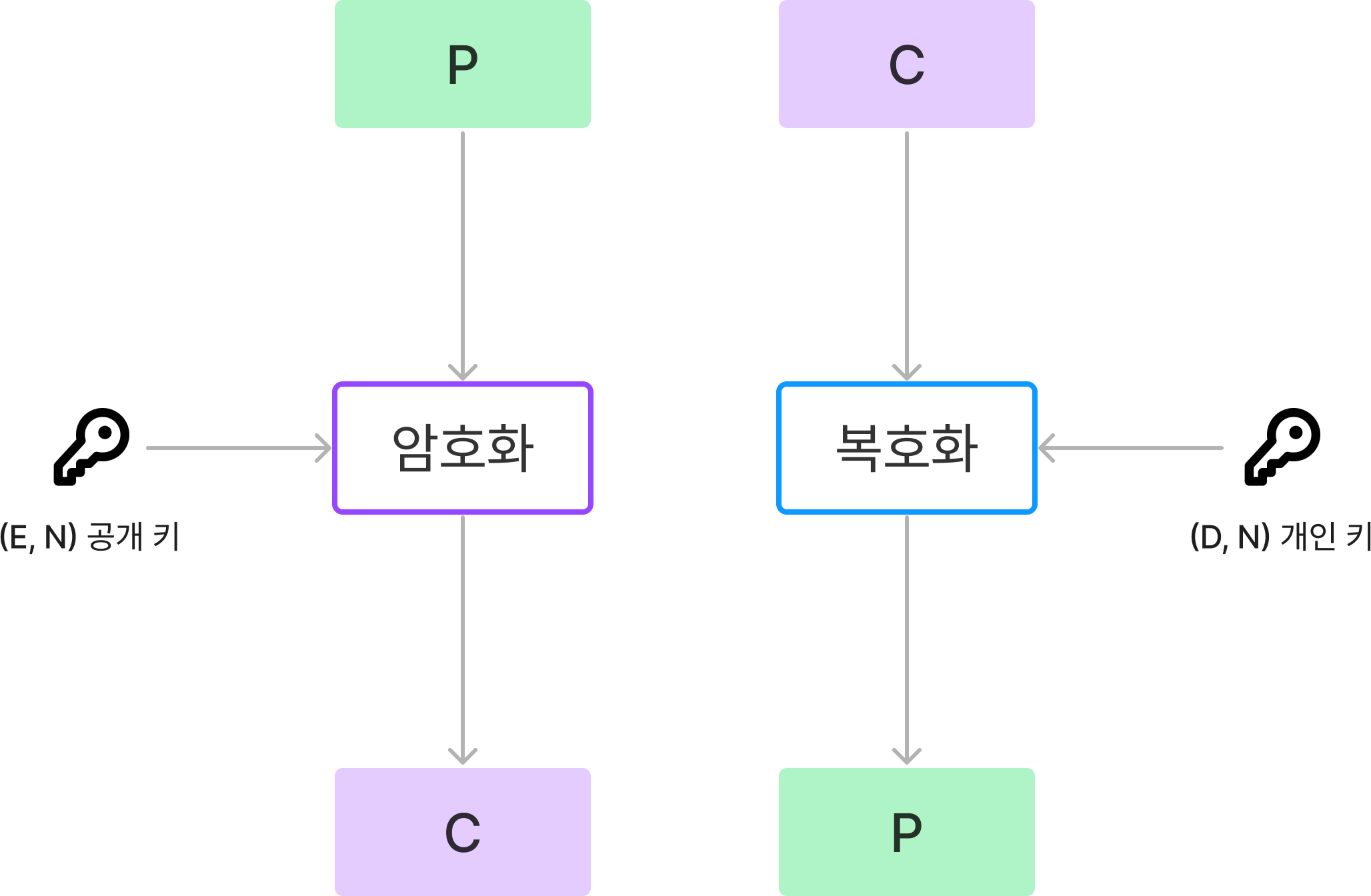 암호문 = (평문)^E mod N