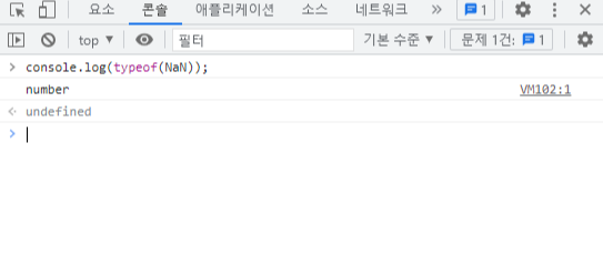 먼저 NaN을 보겠습니다. 우리가 알고 있다시피, NaN의 타입은 Number입니다.
