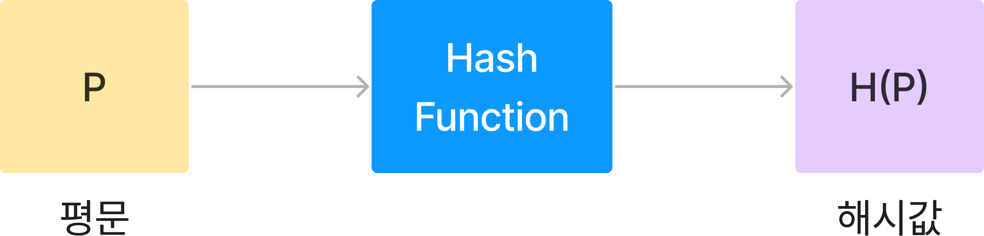 일방향 해시 함수는 우리가 아는 기본적인 암호화와 비슷하게 진행됩니다. 다만 몇 가지 특징이 있습니다.