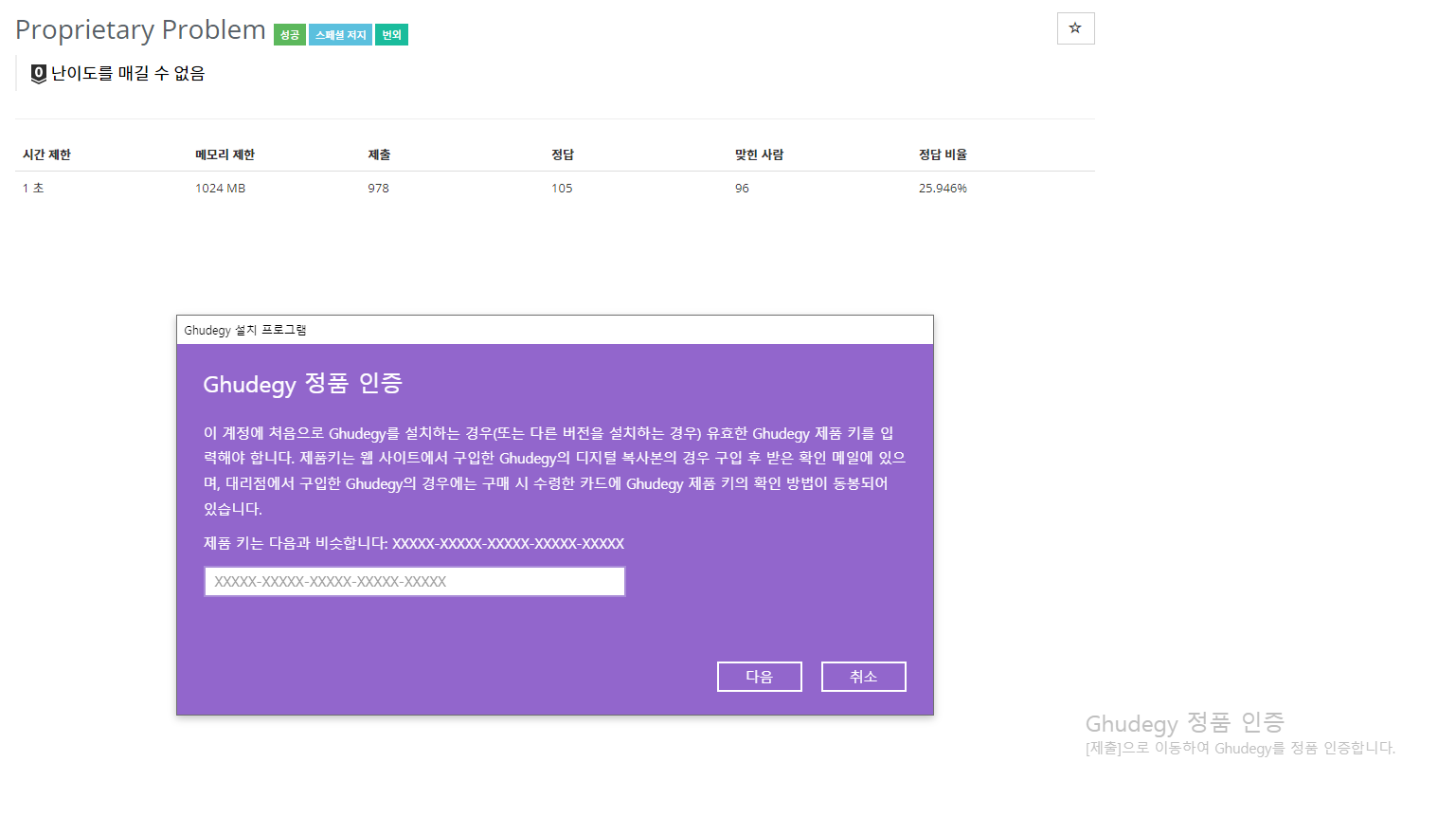 저는 이번 구데기컵에 참가하여 두 문제를 풀었습니다. 하나는 부분 점수만 받았고, 하나는 정답을 맞추었네요.