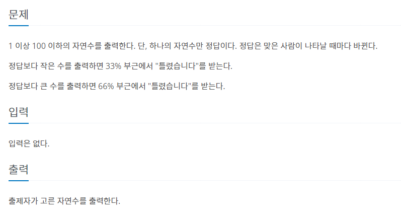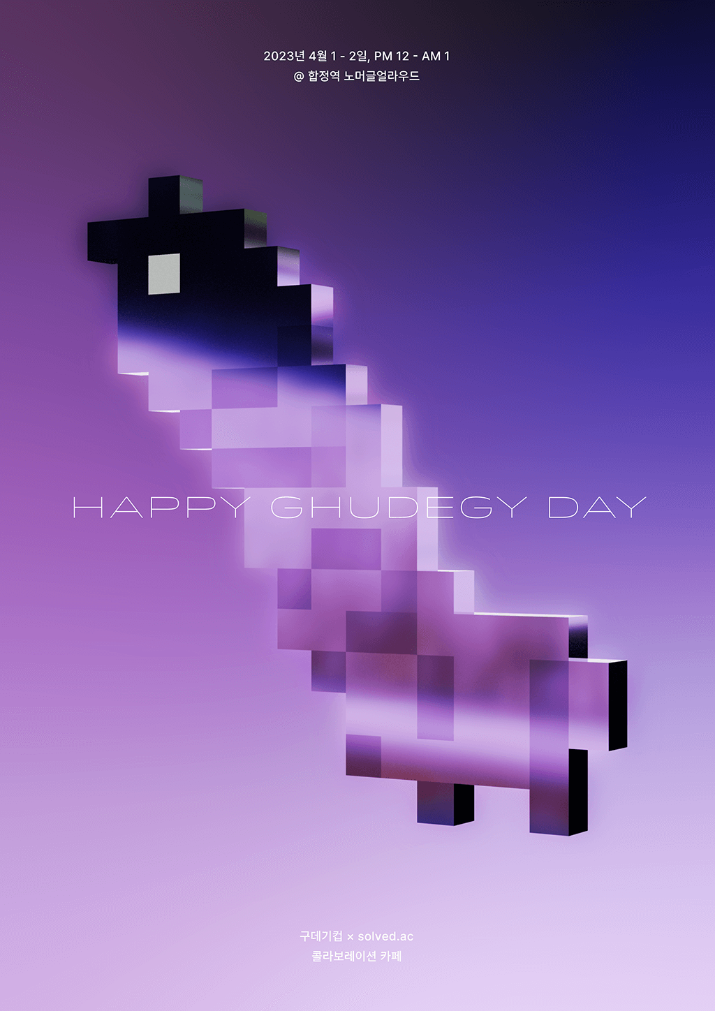 마지막 문제입니다. 이젠 문제 지문도 나오지 않습니다. 이 문제의 경우 여섯번째 구데기컵 사전에 열린 행사에 참여한 사람들만 풀 수 있는 문제입니다.