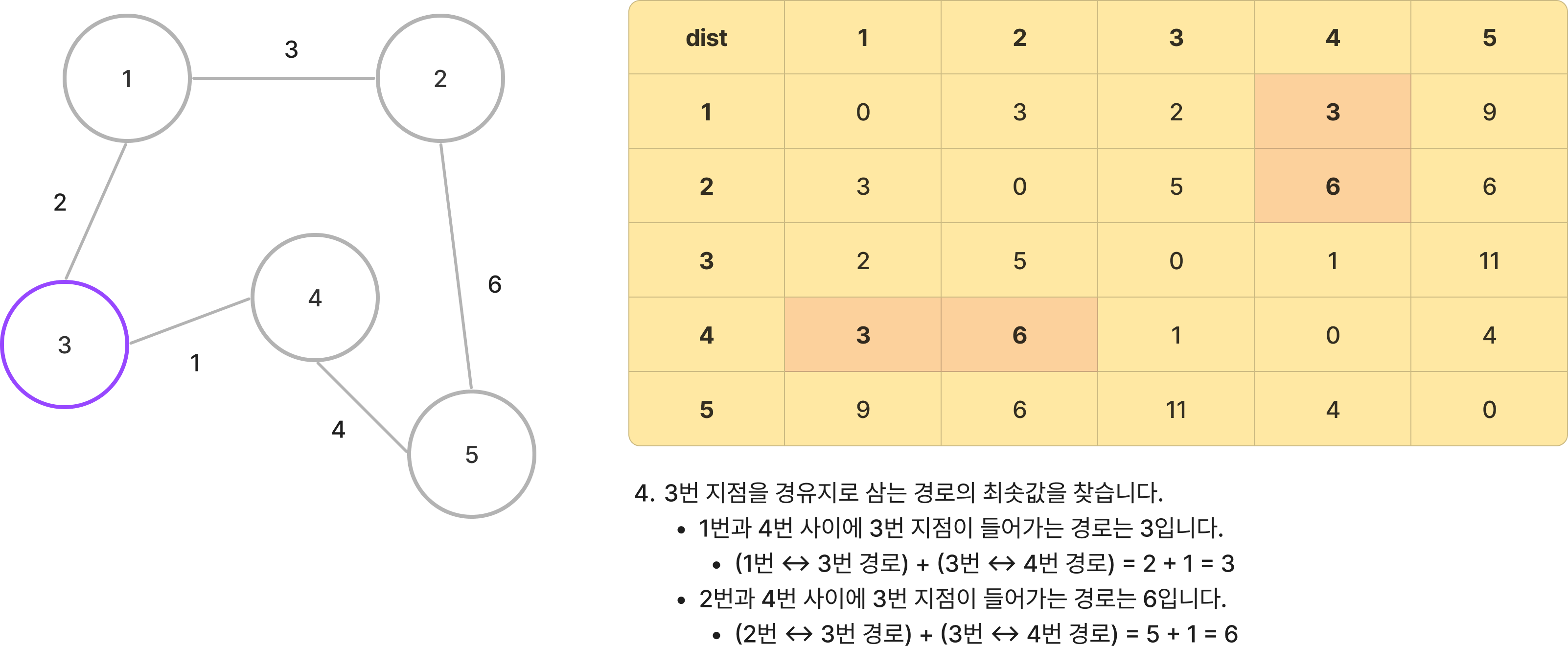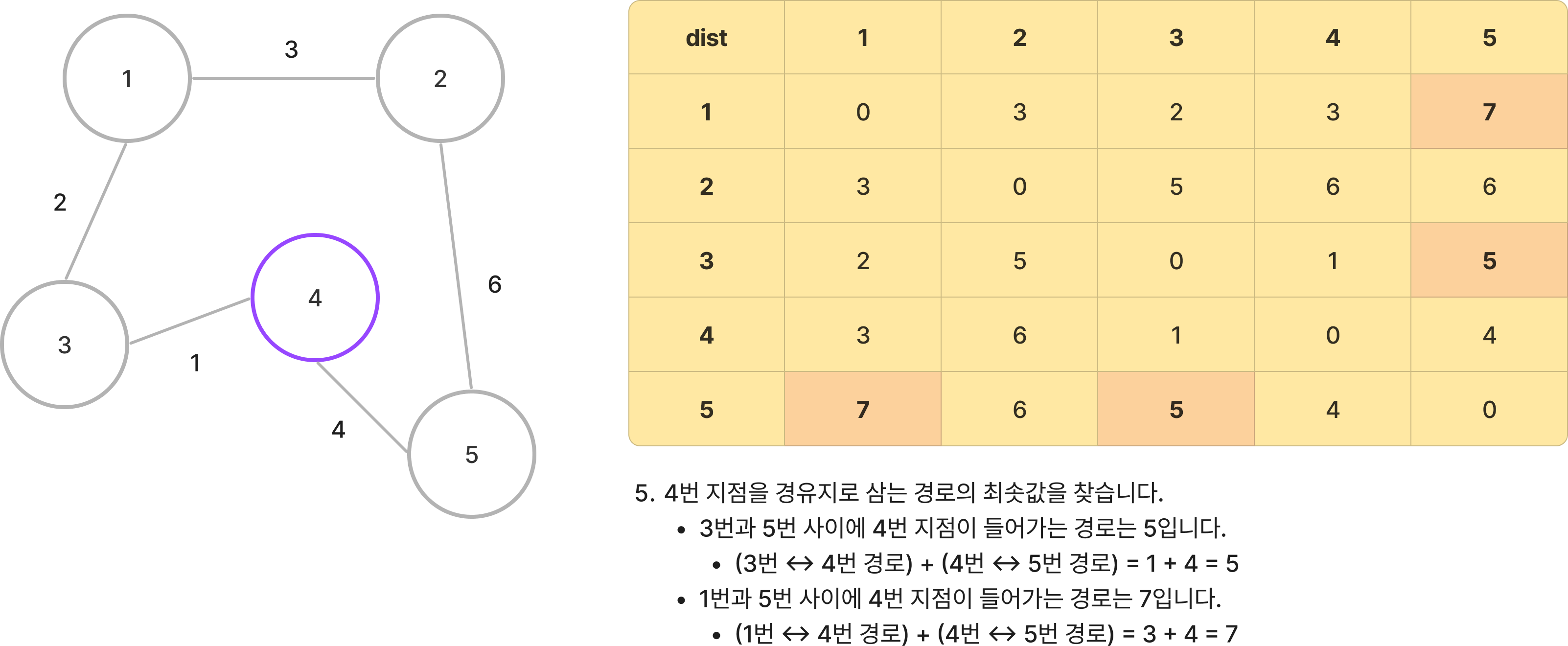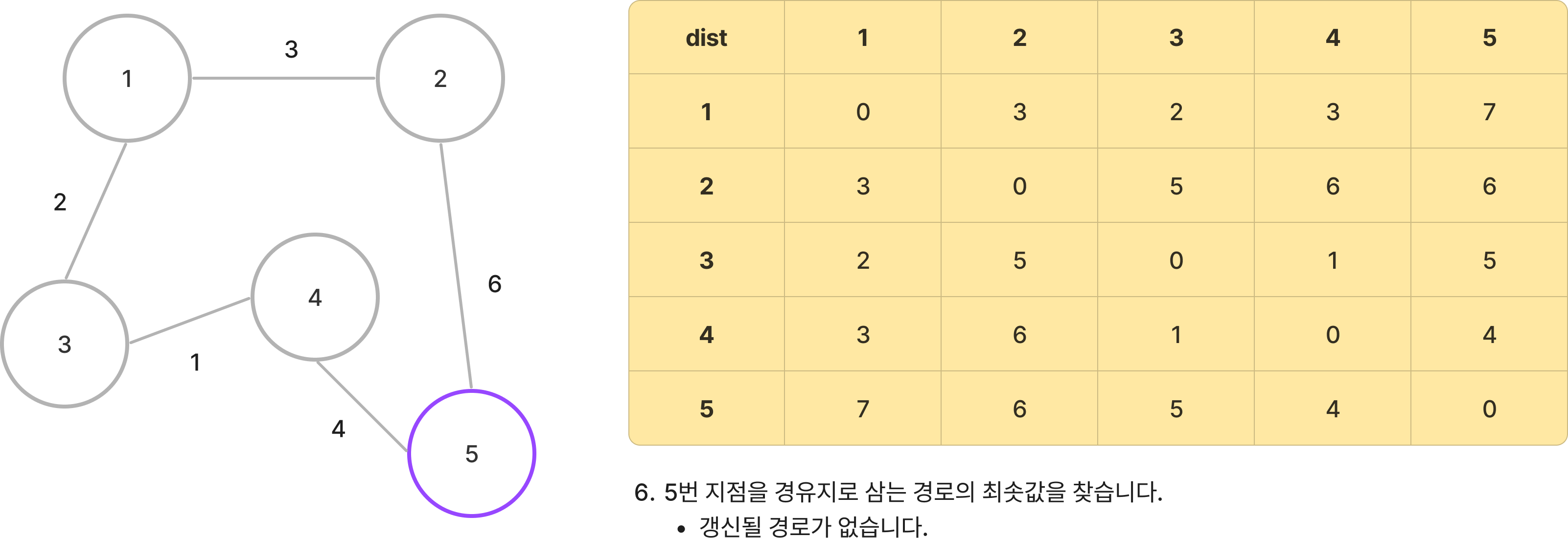 - 갱신된 3번 -> 5번 경로의 길이 : 5