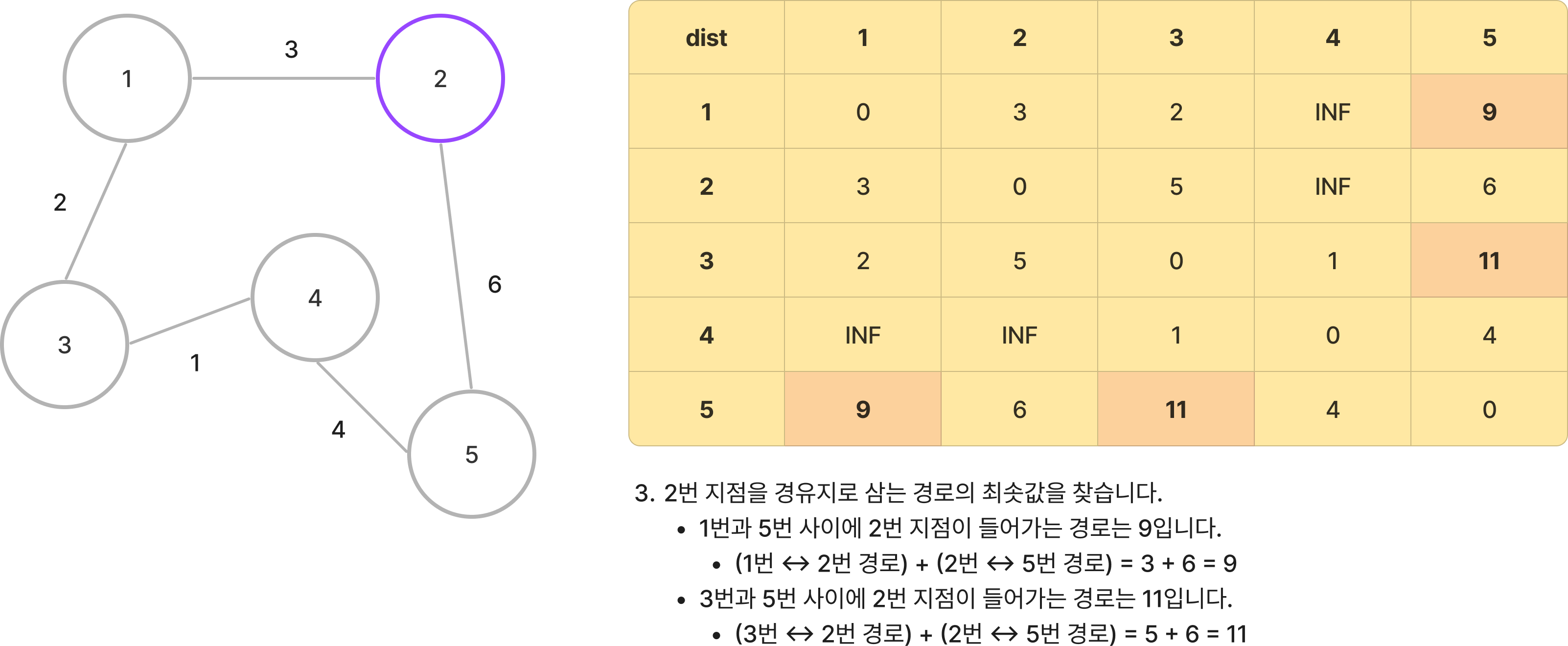- 2번 -> 3번 경로의 길이 : 5