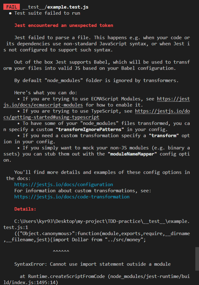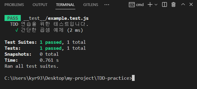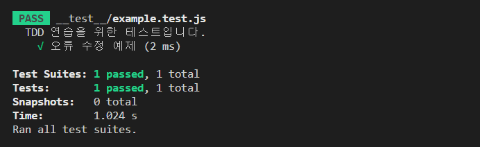 npm run test 명령을 통해 테스트를 실행시켜보면,
