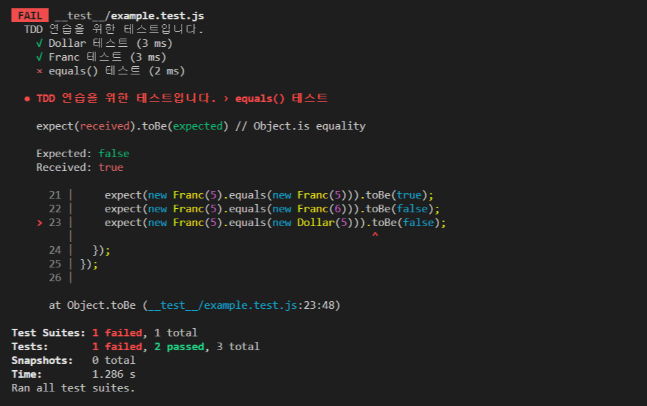 Franc과 Dollar는 서로 다른 통화이니, 마땅히 false를 반환해야 할 것입니다.
