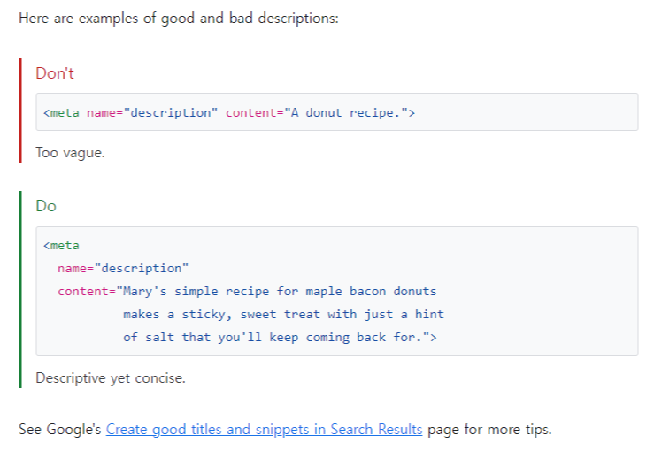 이 중에서 우리가 오늘 알아볼 요소와 가장 가까운 것은 Document does not have a meta description(문서에 메타 설명이 없음) 문서입니다.