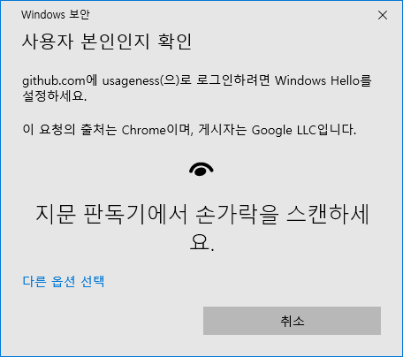 마침 Windows Hello를 사용하고 있으니, 지문을 통해 로그인 할 수 있도록 패스키를 등록해보겠습니다.