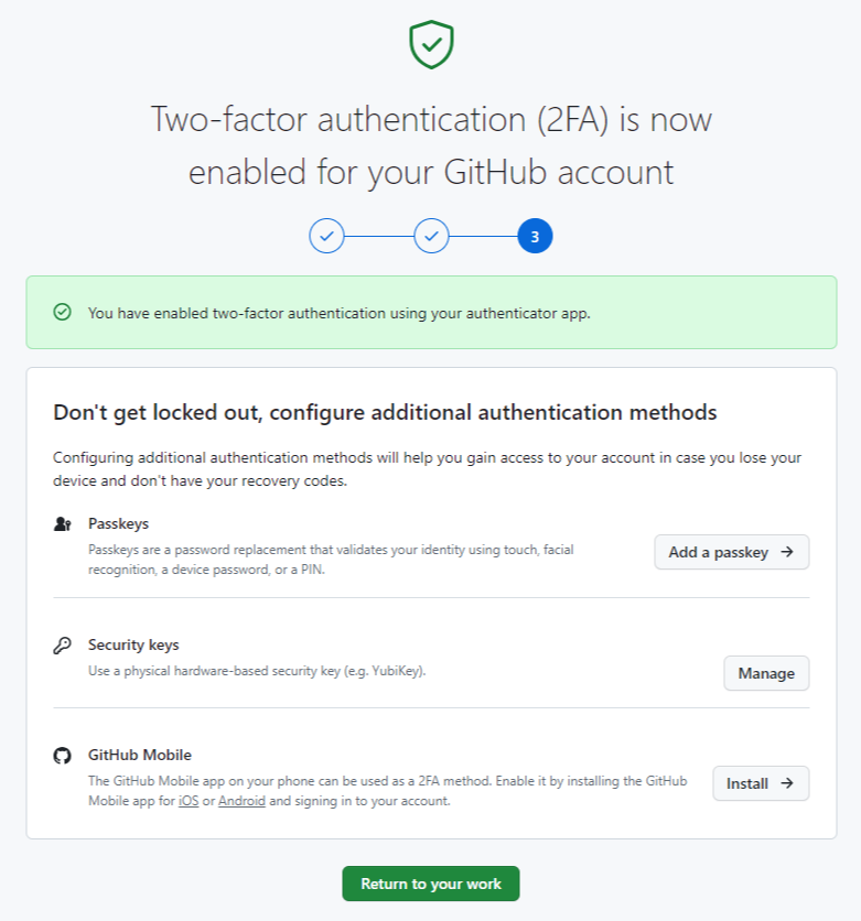 오늘은 Github에 2FA 로그인을 적용하는 과정에 대해 알아보았습니다.