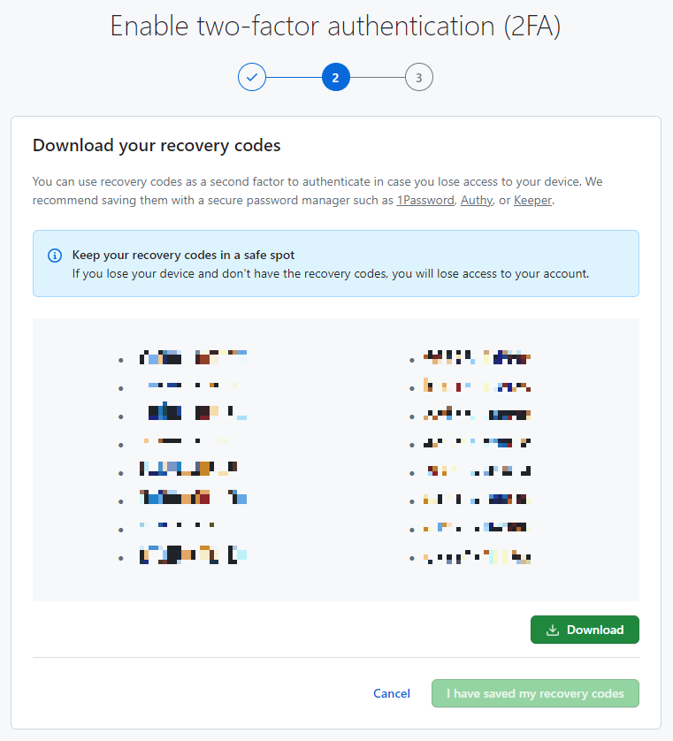 기기 분실에 대비하여 Recovery codes를 제공하는데,
