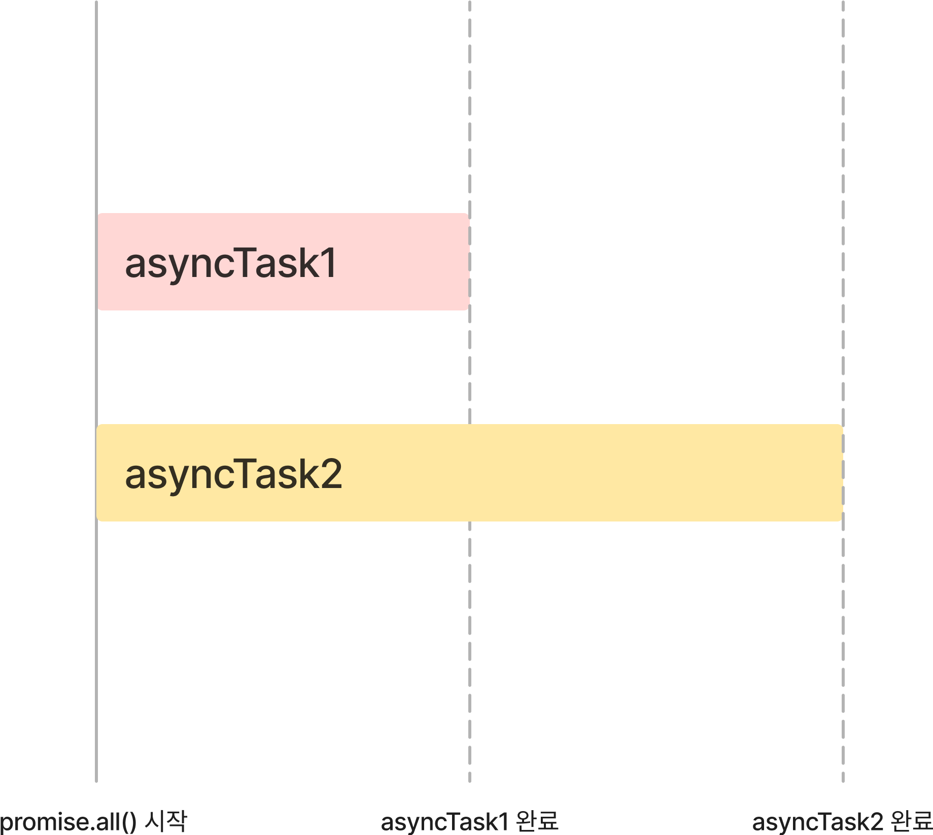 비록 메서드의 결과값이 처음 순서와 동일하긴 하지만, 이는 이행 이후의 결과값을 순서대로 배열에 넣어 반환하는 것일 뿐 내부의 프로미스 자체는 병렬적으로 실행되는 메서드라는 것을 기억해야 합니다.