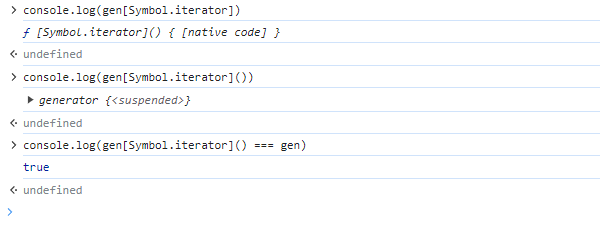 간혹 well-formed iterable이 이터러블한 이터레이터로 설명되는 경우가 있는데, 제너레이터 객체가 이터러블한 이터레이터를 만족하는 동시에 well-formed iterable일 뿐 (위 캡쳐에서 확인할 수 있듯 @@iterable이 자기 자신을 반환합니다.) 그 역은 성립하지 않기 때문에 엄밀히는 틀린 설명입니다.