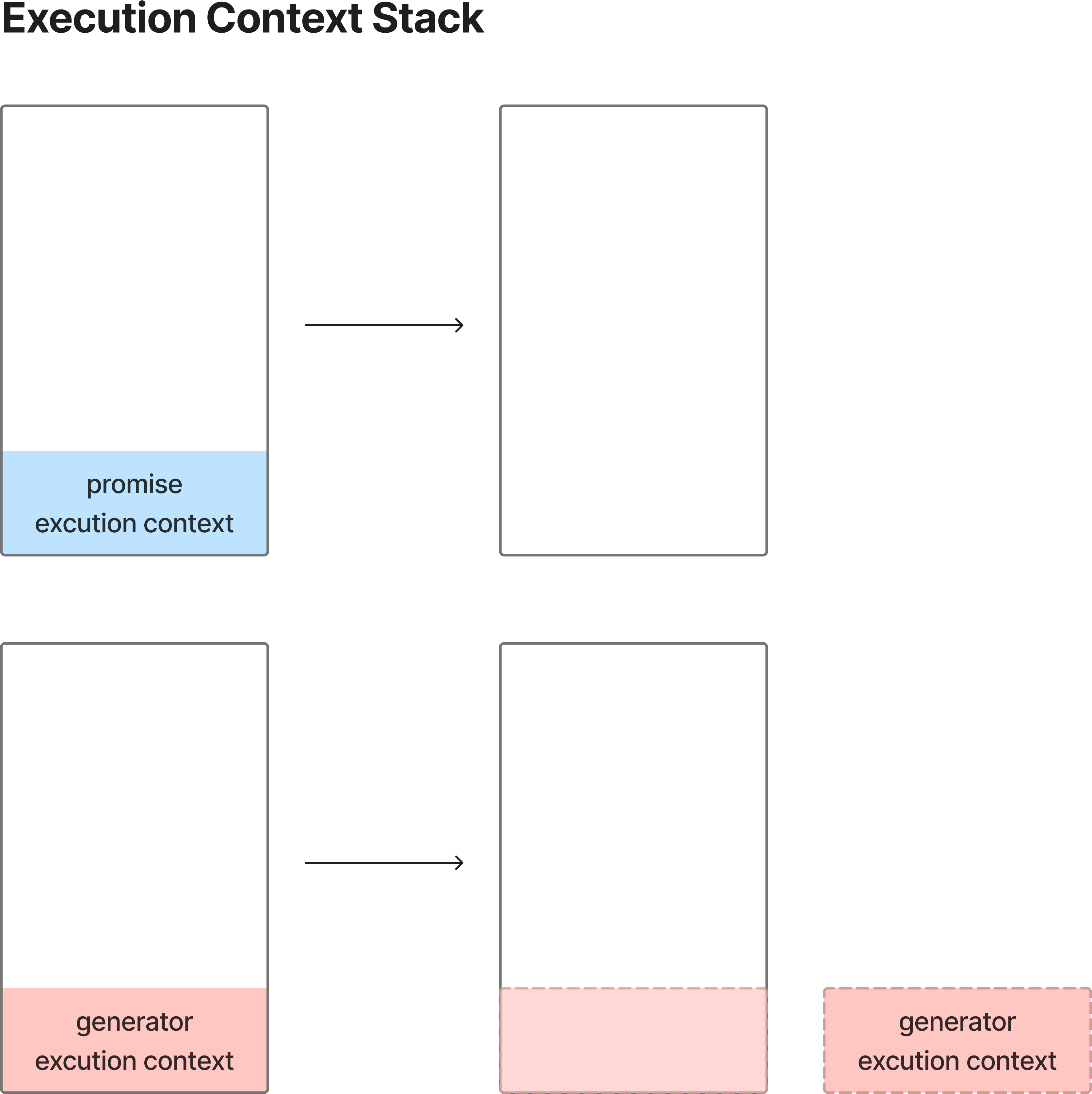 자바스크립트는 실행 컨텍스트를 기반으로 동작합니다. Callback과 Promise가 그랬듯 Generator 또한 마찬가지로 실행 컨텍스트 위에서 동작하는데, 다른 비동기 작업과는 다르게 이전의 값들을 기억하고 있으면서 일시정지(pause)와 재개(resume)의 상태를 자유롭게 넘나들 수 있습니다. 이 말인 즉, 언제든 작업을 멈췄다가 다시 시작하는데에 문제가 없다는 의미이기도 합니다.