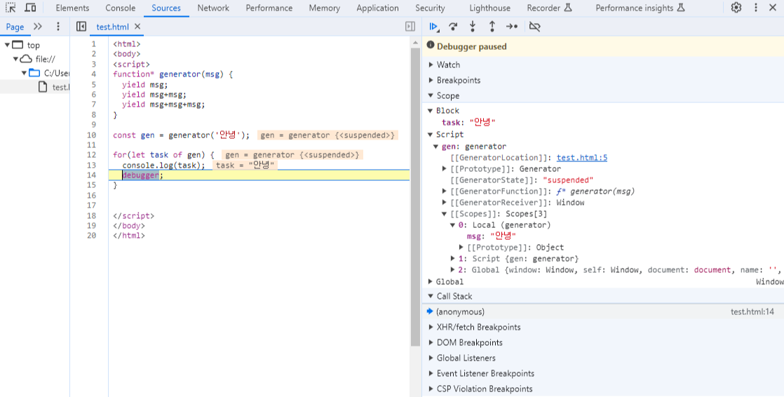 실행 컨텍스트에서의 Generator