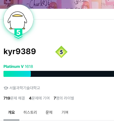 코딩 테스트 대비 겸, 학교 졸업 전까지 달성하고 싶었던 플래티넘 티어를 달성했다.