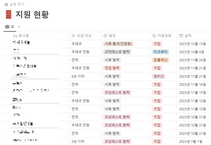 아직 합격 소식을 받진 못했지만 포기하지 않고 열심히 하다보면 곧 좋은 소식을 받을 수 있을것 같다.