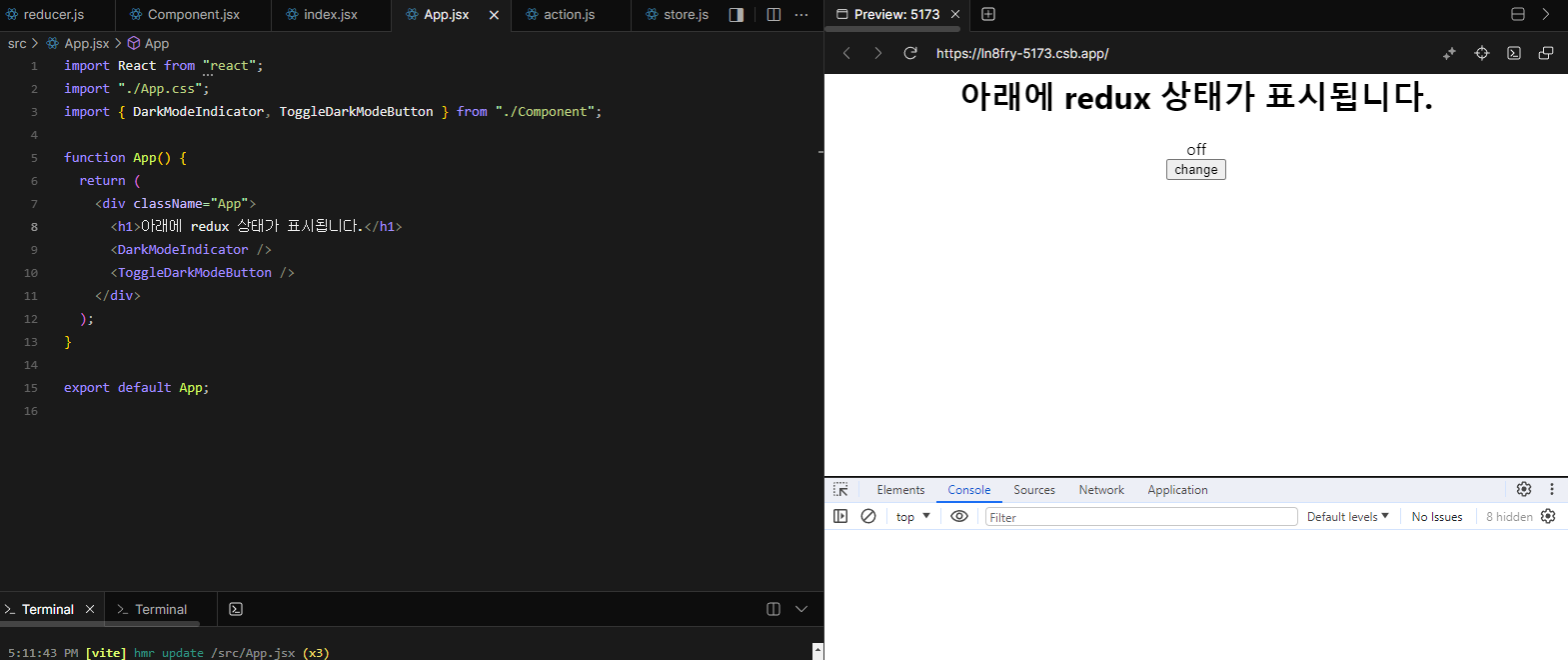 여기까지가 Redux를 이용한 상태 관리 방법입니다.