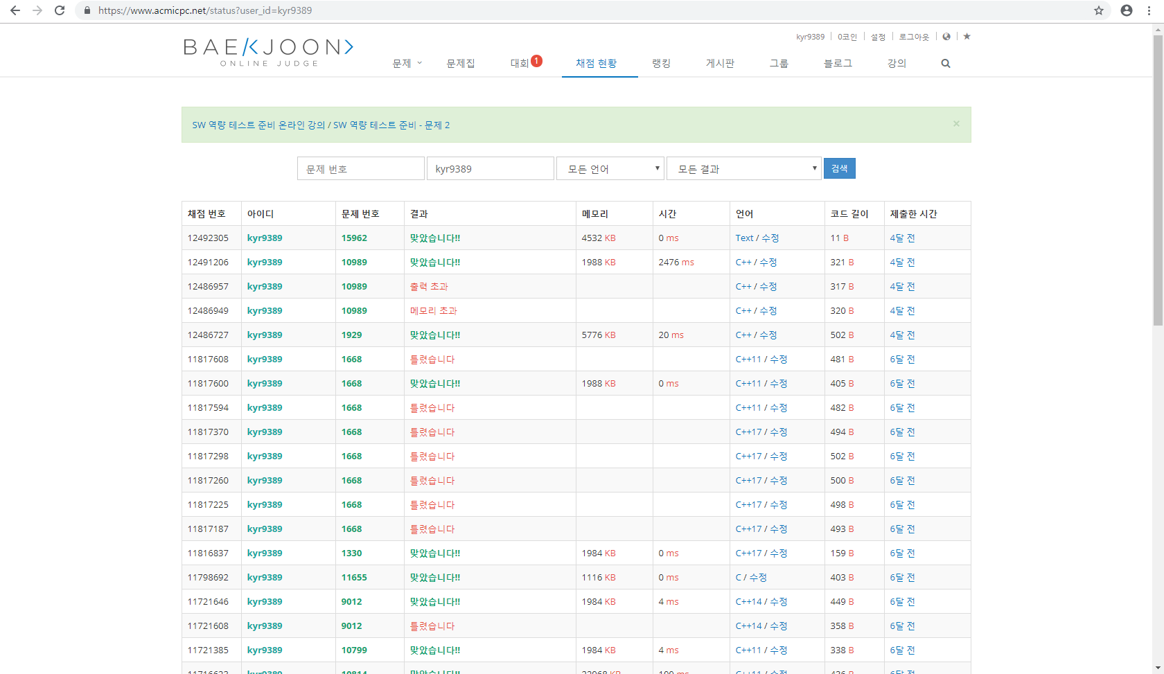 개발만 하기 물리는 감이 있어 알고리즘 책도 구매해 공부해보고, 틈나는대로 백준 문제도 몇개 풀어보며 나름대로 시간을 알차게 쓰려고 노력했던 것 같습니다. 이건 정말 스스로에게 놀랐는데, 육군 인트라넷의 모 게시판에 알고리즘 글도 연재중입니다. 귀찮은걸 병적으로 싫어하는 성격인데도 나서서 글을 쓰게 하다니. 군인의 의지는 정말 대단합니다.