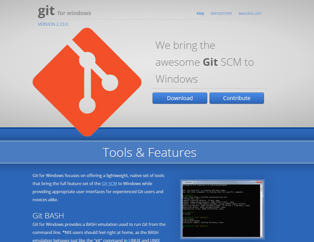1) Google에 검색하여 Git bash를 다운받습니다. (https://gitforwindows.org/)