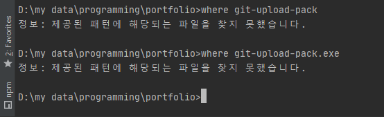 Terminal (윈도우를 사용하기에 위에서는 cmd이다.) 에서 git-upload-pack을 찾을 수 없는 현상이 일어나고 있기에 파일 경로를 직접 찾아가 보았다.
