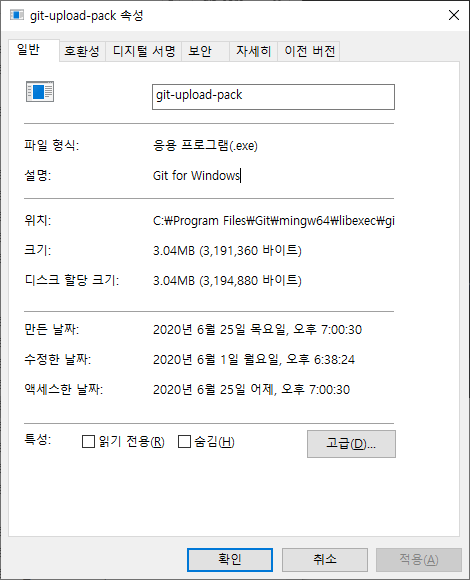 git-upload-pack.exe 라는 파일명으로 Program Files의 git폴더 안에 제대로 설치되어 있는 것을 확인했다.