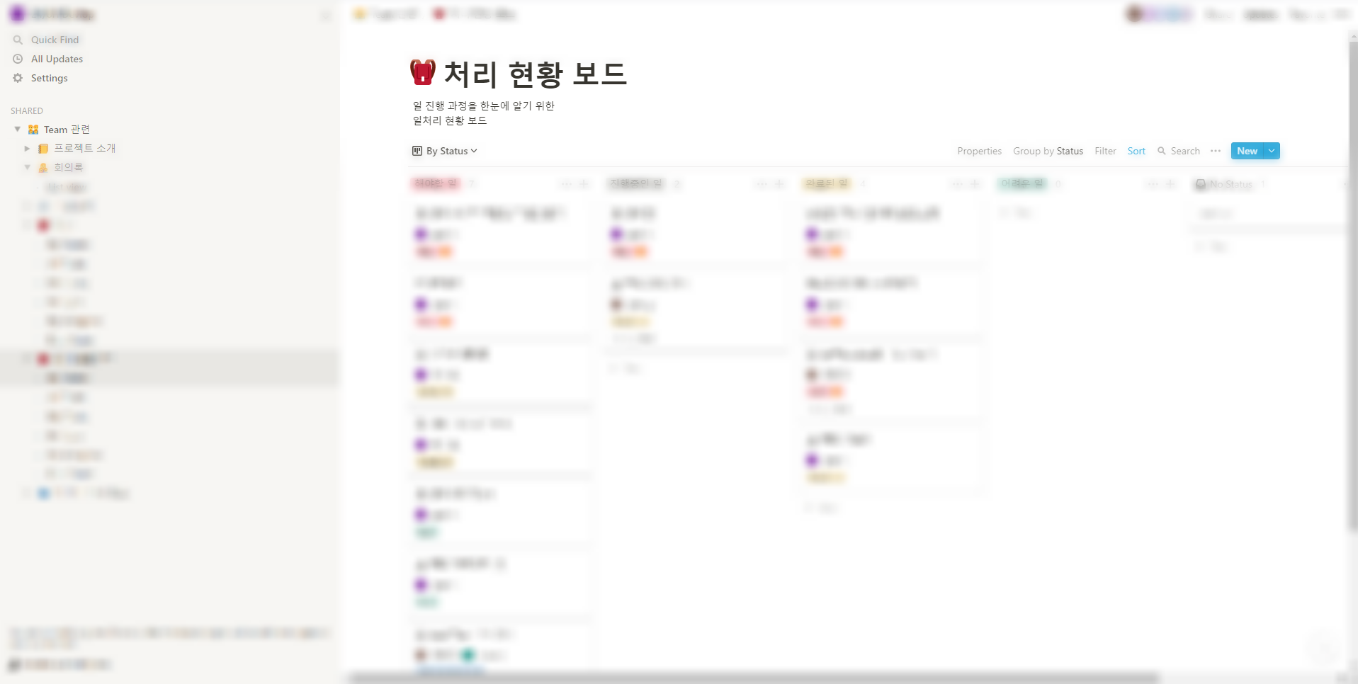 보통 팀이 함께 작업을 하게되면 슬랙과 같은 협업도구를 사용한다는건 알고 있었지만, 슬랙이 의사소통에 특화된 프로그램이라면 노션은 문서정리와 정보 저장에 초점을 맞춘 도구라는 생각이 들었습니다.