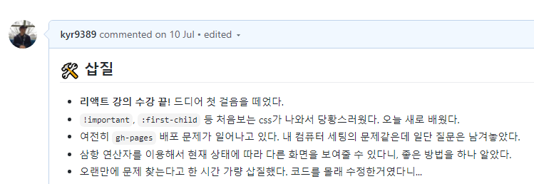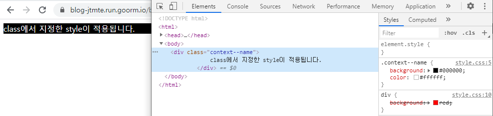 title 클래스의 검은색은 취소선과 함께 적용되지 않았고, context--name 클래스의 녹색만 적용된 모습을 확인할 수 있었습니다.