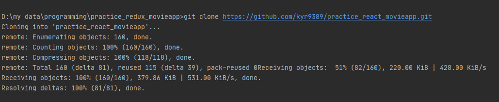 이렇게 지난 작업 내용을 그대로 이어받은 새 저장소가 탄생했습니다. 사실 원본에서 다른곳에 푸시하면 빠르지만 굳이 저렇게 한 이유는 github에서 수정했던 readme 파일에 뭔가 문제가 생겼는지 pull을 받지 못해서 번거로운 과정을 거쳤습니다. 특별한 수정사항이 없으신 분들은 기존 저장소에서 리모트만 변경해서 푸시하셔도 됩니다.