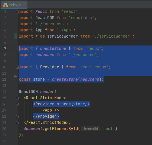 다음은 store를 추가해 줄 차례입니다. src 폴더에 있는 index.js를 열어줍니다.