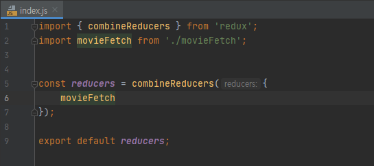index.js 파일을 생성하고 movieFetch 파일을 불러옵니다. 이 파일의 역할은 actions의 index와 동일합니다.