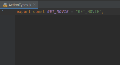 ActionTypes.js 에는 상수 형태로 사용해야 할 액션의 이름들을 저장한 모습입니다. 우리는 영화 목록을 가져오는 동작을 액션으로 만들 예정이기에 이름은 GET_MOVIE 정도로 하겠습니다.