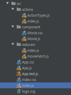 index.js 파일을 생성하고 movieFetch 파일을 불러옵니다. 이 파일의 역할은 actions의 index와 동일합니다.