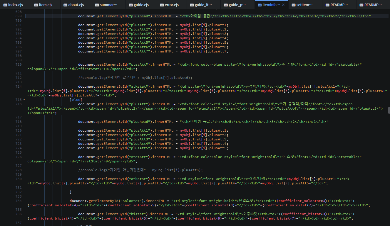 저자는 리팩토링을 겉으로 드러나는 코드의 기능을 바꾸지 않으면서 내부 구조를 개선하는 방식이라고 정의합니다. 보통 프로그램을 만든다고 하면 "설계를 마치고 코딩을 한다" 가 맞는 것처럼 보이는데, 처음 정했던 설계에 맞춘 구조는 코드 수정을 거쳐가며 점점 난잡해지고 첫 의도에서 벗어나게 된다고 말합니다. 위의 스크린샷에 보이는 코드가 바로 그렇습니다. 시작하기 전 생각했던 구조와 코드들이 수정과 추가 작업을 거쳐가며 나중엔 코드를 짰던 장본인인 저조차도 알아보기 어려워진 수준이 되어버린겁니다. 공학에 가깝던 코딩 작업이 서서히 해킹에 가까워진다 고 표현했는데 그 말이 딱 들어맞는 것 같아요.