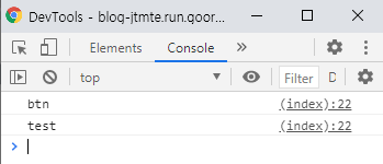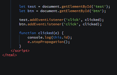 버튼을 클릭해보니 btn의 이벤트가 먼저 실행되고, 바로 이어서 test의 이벤트가 실행된 것을 알 수 있습니다. 이렇게 자식 요소의 이벤트 실행을 의도하였던 것인데 부모 요소의 이벤트까지 실행시켜버리면 난감한 일이 아닐 수 없습니다.