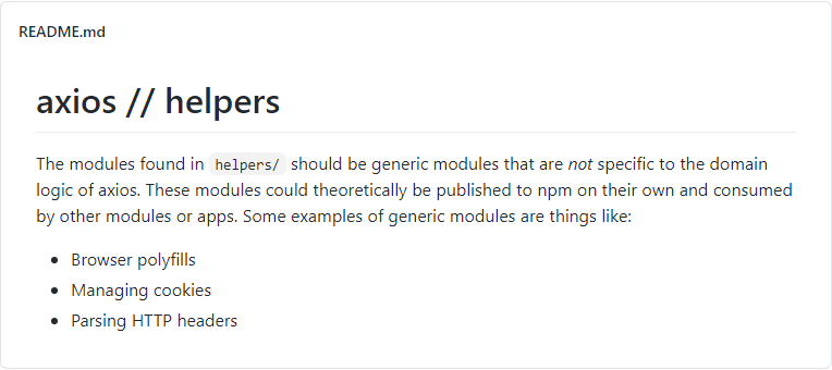 helpers 폴더에 있는 파일들은 특정한 도메인에서 이루어지지 않은 동작들을 보조하는 역할을 합니다. core에 있던 코드들이 처리하지 못하는 넓은 범위에서 사용되는 코드들인데, 말 그대로 helper 라는 이름이 어울리는 역할이네요. 이론적으론 npm에 올려서 다른 모듈이나 프로그램에서도 사용될 수 있는 그런 함수들을 모아놓은 장소라고 보시면 될 것 같습니다.